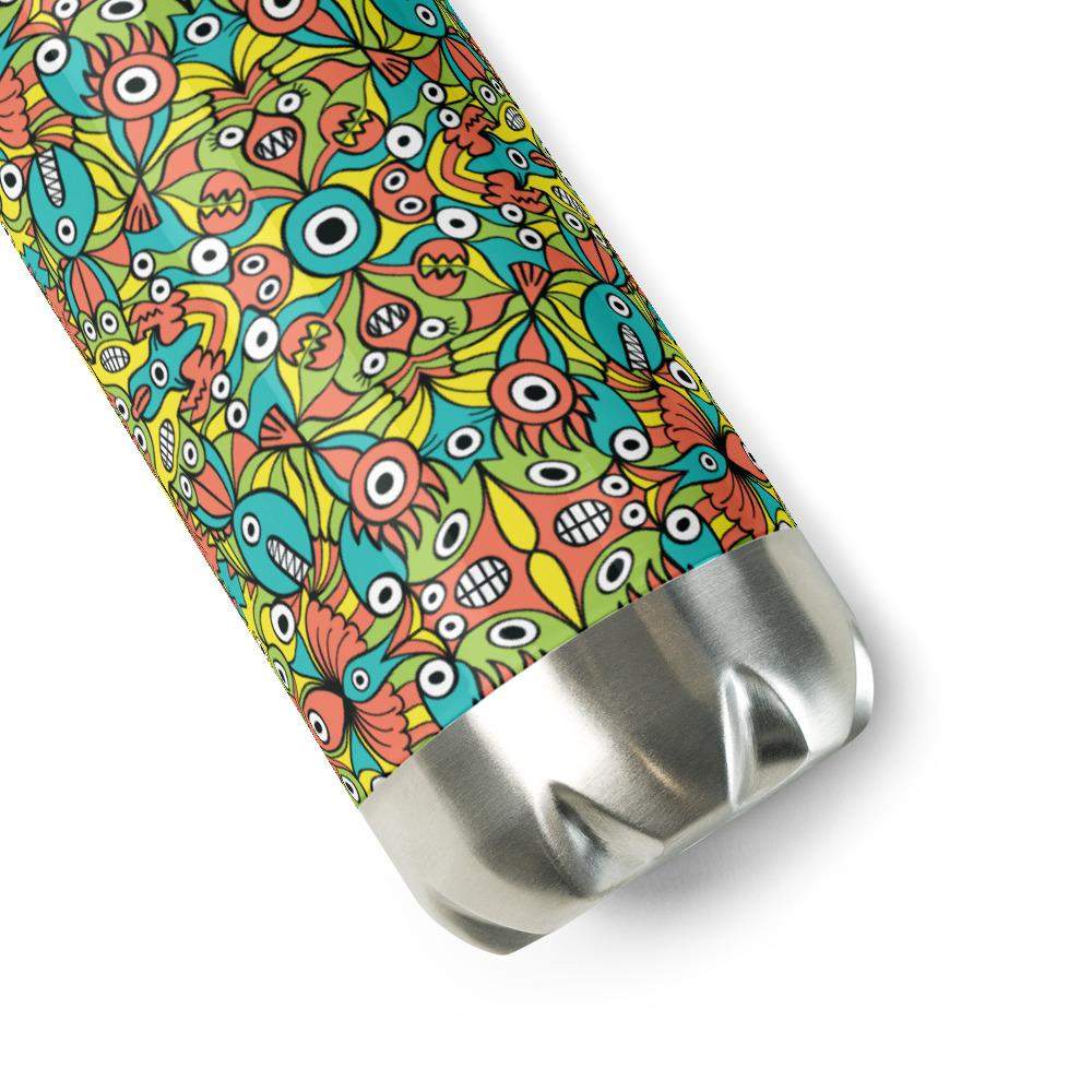 Colorful alien monsters that reproduce to infinity to create an amazing pattern design. They compose a mirrored design using two lines of symmetry. This design features fish, aliens, monsters, crabs, and a wide variety of out-of-this-world creatures.