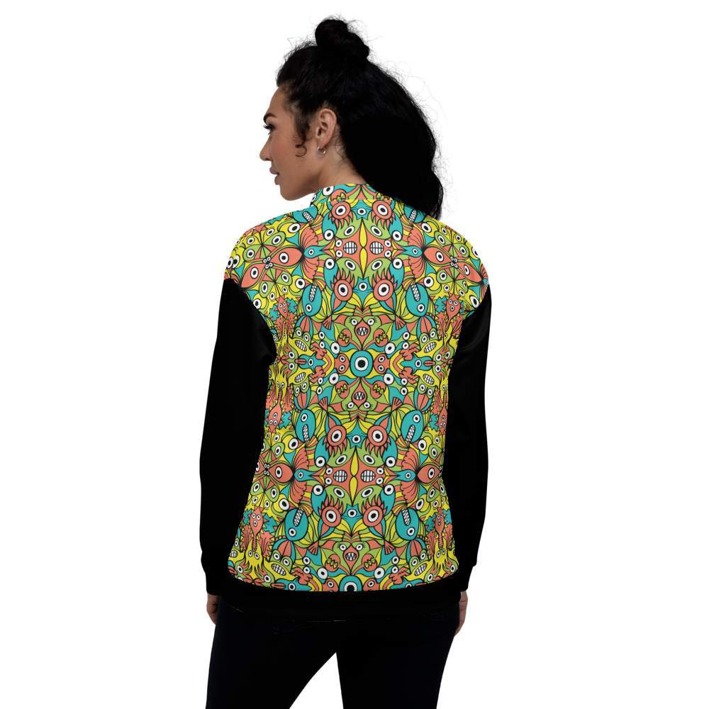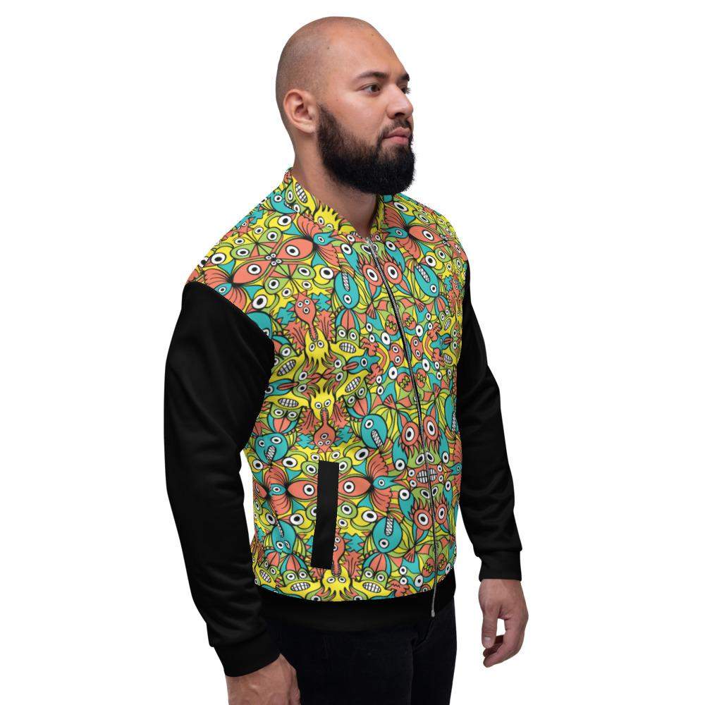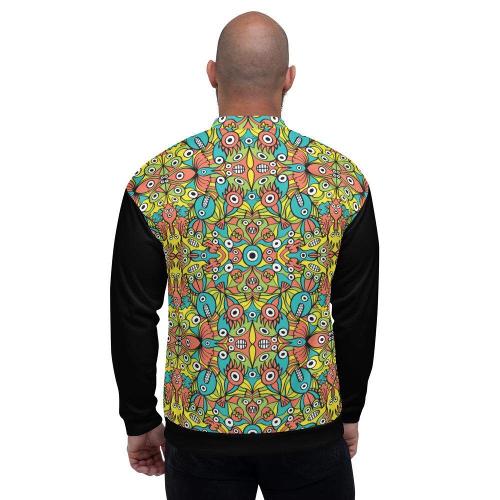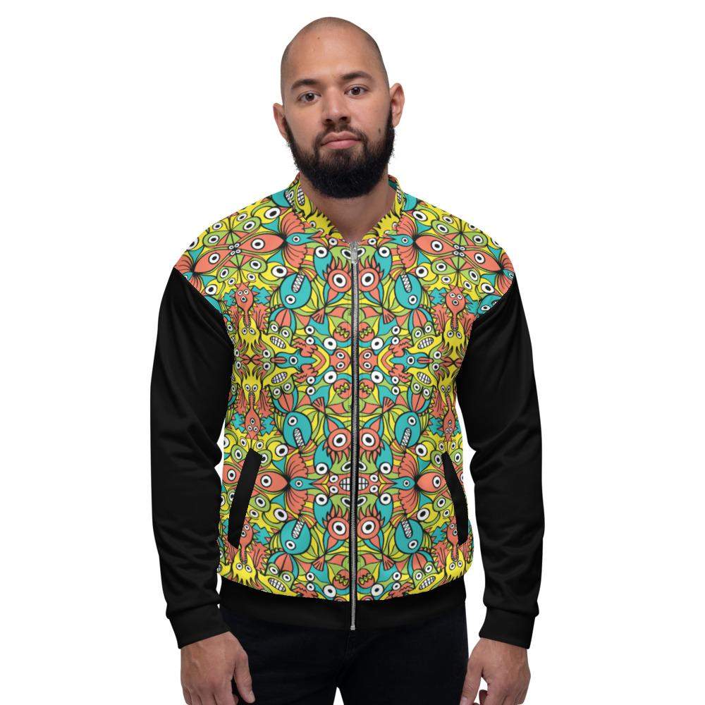 Add a little zing to your wardrobe with this vibrant All-Over Print Bomber Jacket. Wear it on a basic t-shirt, or layer it on top of a warm hoodie—it’ll look great either way. With a brushed fleece inside, and a relaxed unisex fit, this Bomber Jacket is just the stuff of the dreams, so be quick to grab yourself one!
