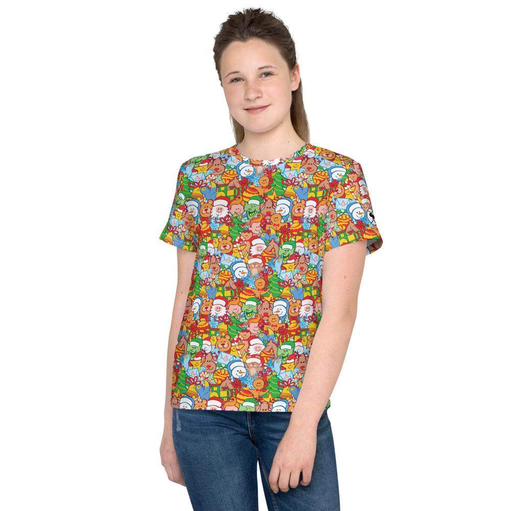 All Christmas stars in a pattern design Youth crew neck t-shirt