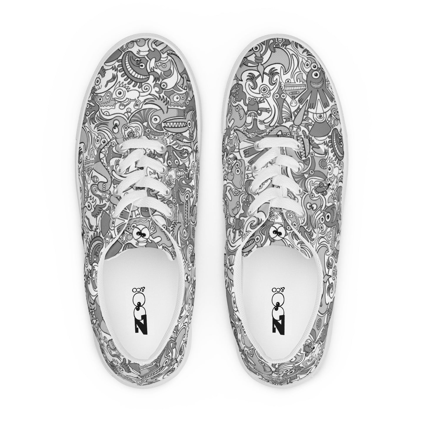 Awesome doodle creatures in a variety of tones of gray Men’s lace-up canvas shoes