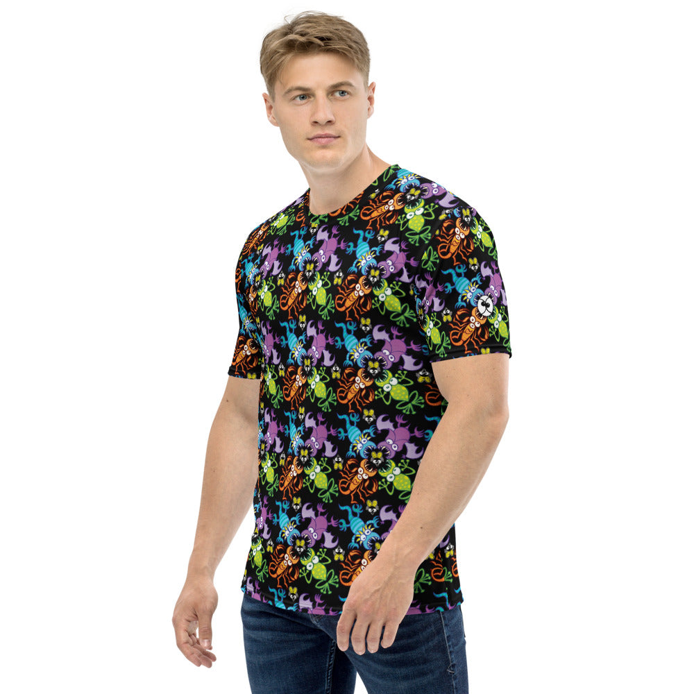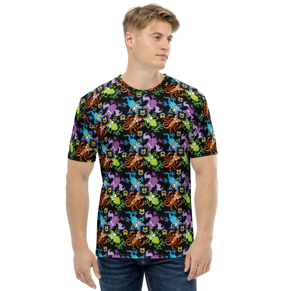 Bat, scorpion, lizard and frog fighting over an unlucky fly Men's T-shirt