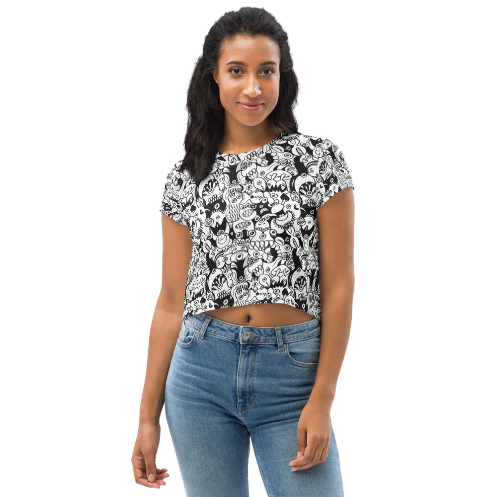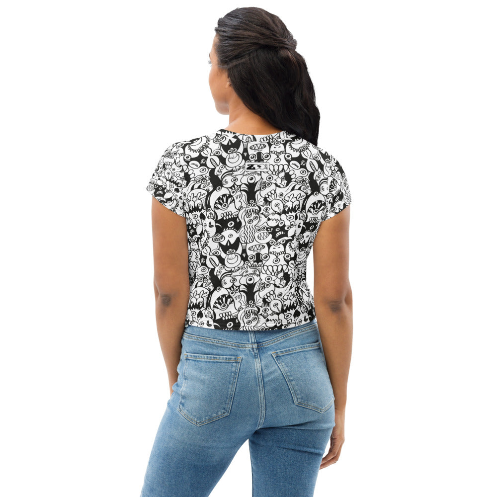 Looking for you next wardrobe favorite? Well, look no further because this crop tee is printed and sewn to fit you just right. To top that off, the original all-over design is definitely worth showing off, so don't hesitate to own one of these tees - they're meant to be adored.