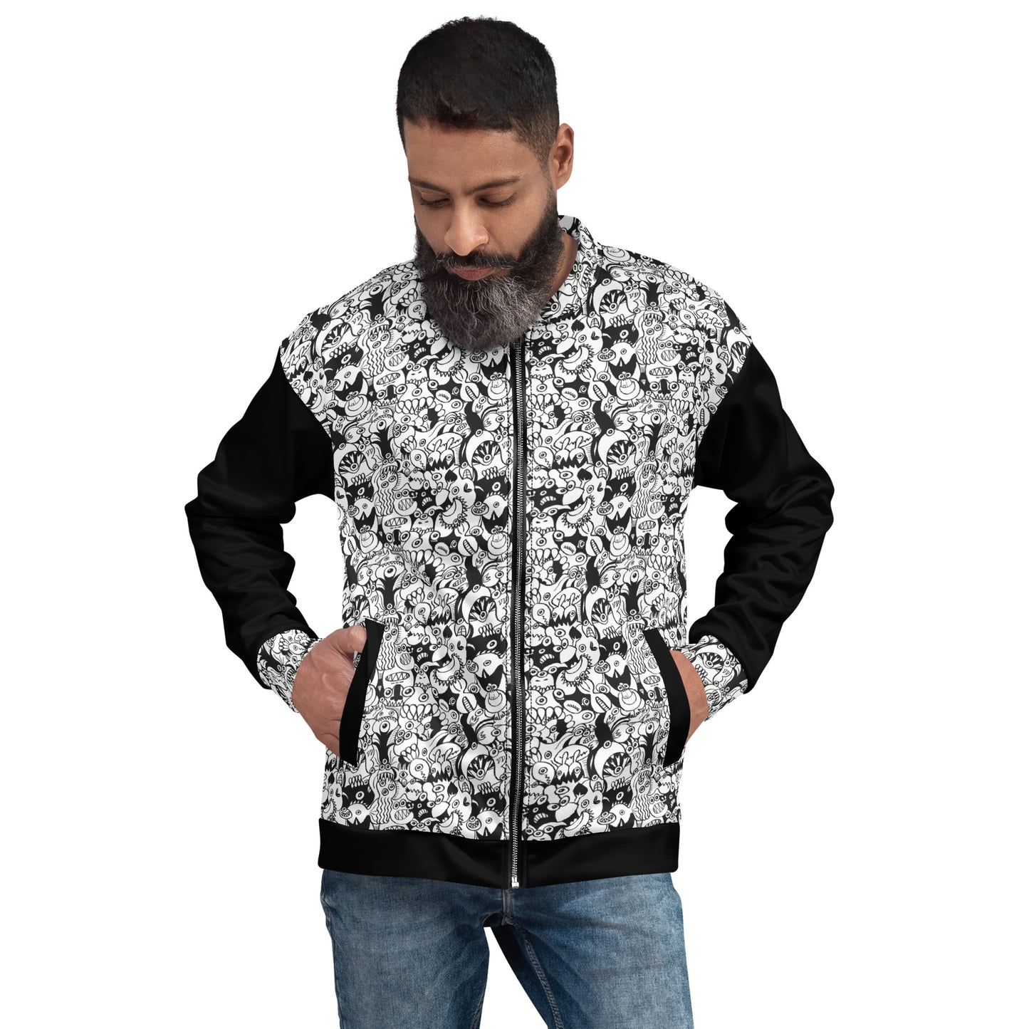Black and white cool doodles art Unisex Bomber Jacket