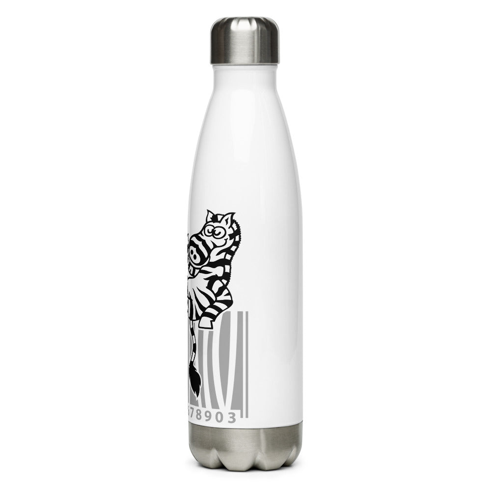 Cool zebra waving while sitting on a barcode Stainless Steel Water Bottle