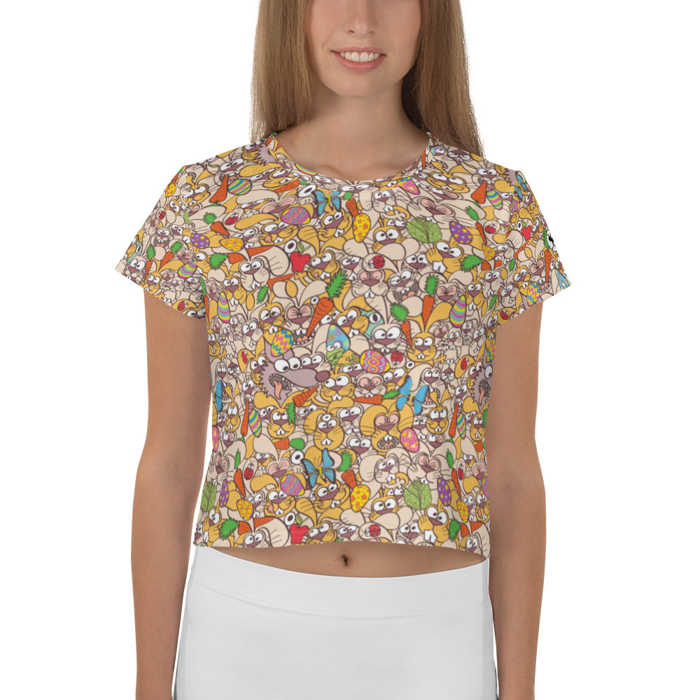 Thousands of crazy bunnies celebrating Easter All-Over Print Crop Tee
