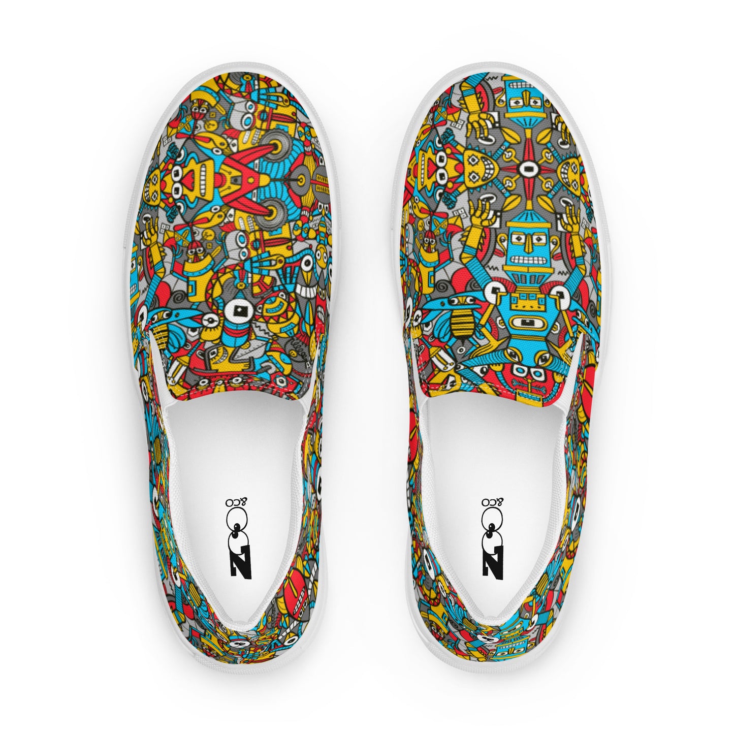 Crazy robots rising from rust in lively junkyards Men’s slip-on canvas shoes