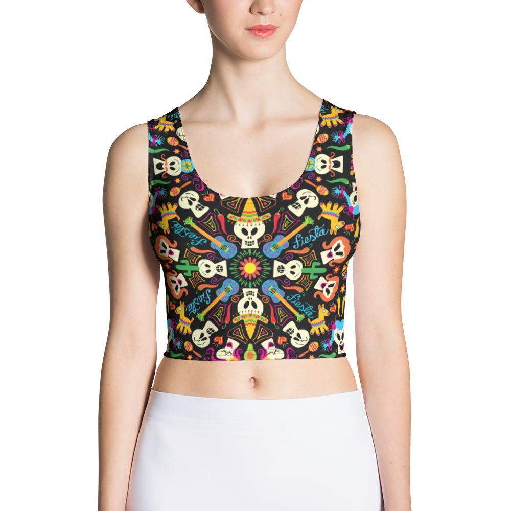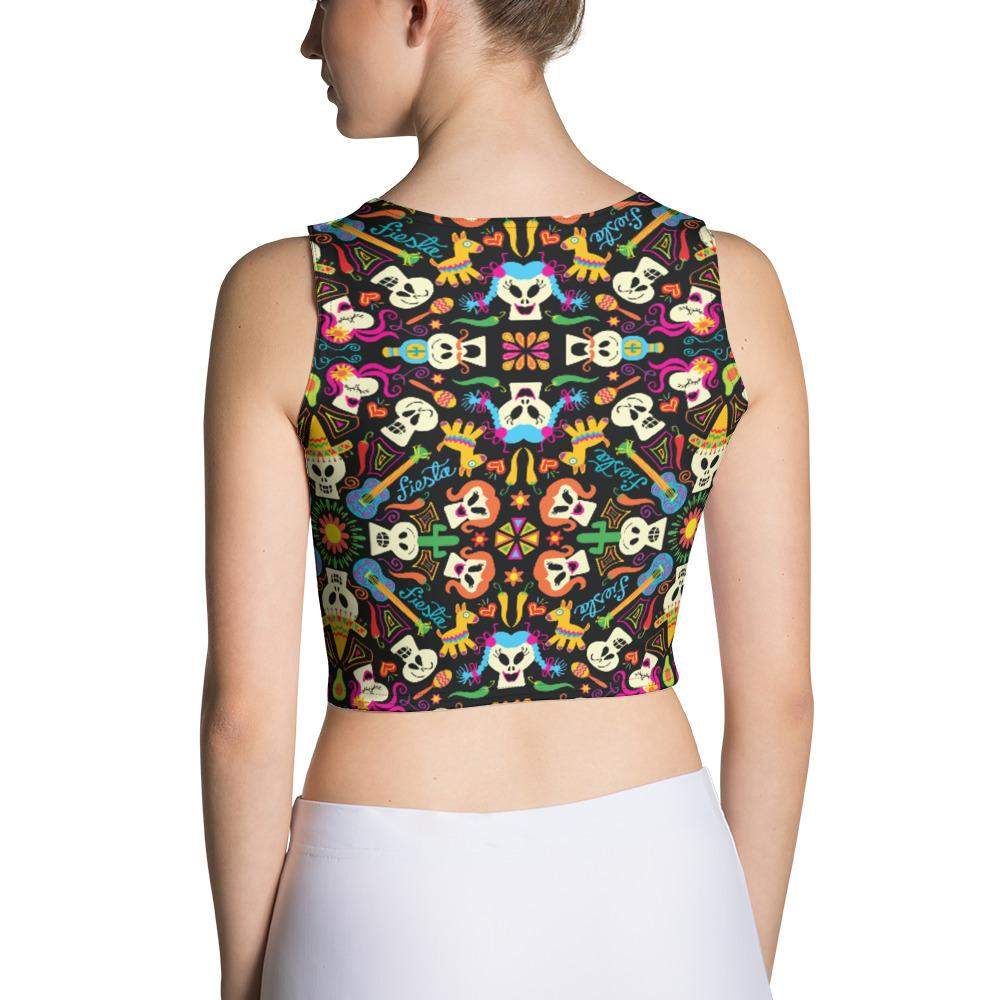 Cheerful Mexican skeletons having fun celebrating the Day of the Dead. Vivid pattern design in the form of a radial mandala with lots of Mexican symbols related to this traditional holiday. Skeletons, guitars, flowers, avocados, maracas, cactuses, bottles of tequila, piñatas, and hot peppers join the party! Great for Halloween!