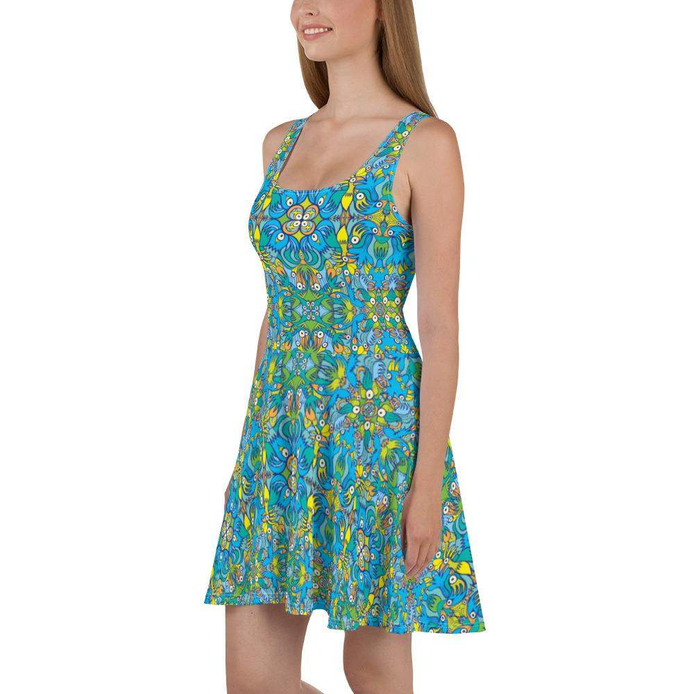 Dress to impress with this sleeveless skater dress! The soft fabric and flared skirt give it an elegant twist that brings out the intricate design with a beautiful vibrancy.