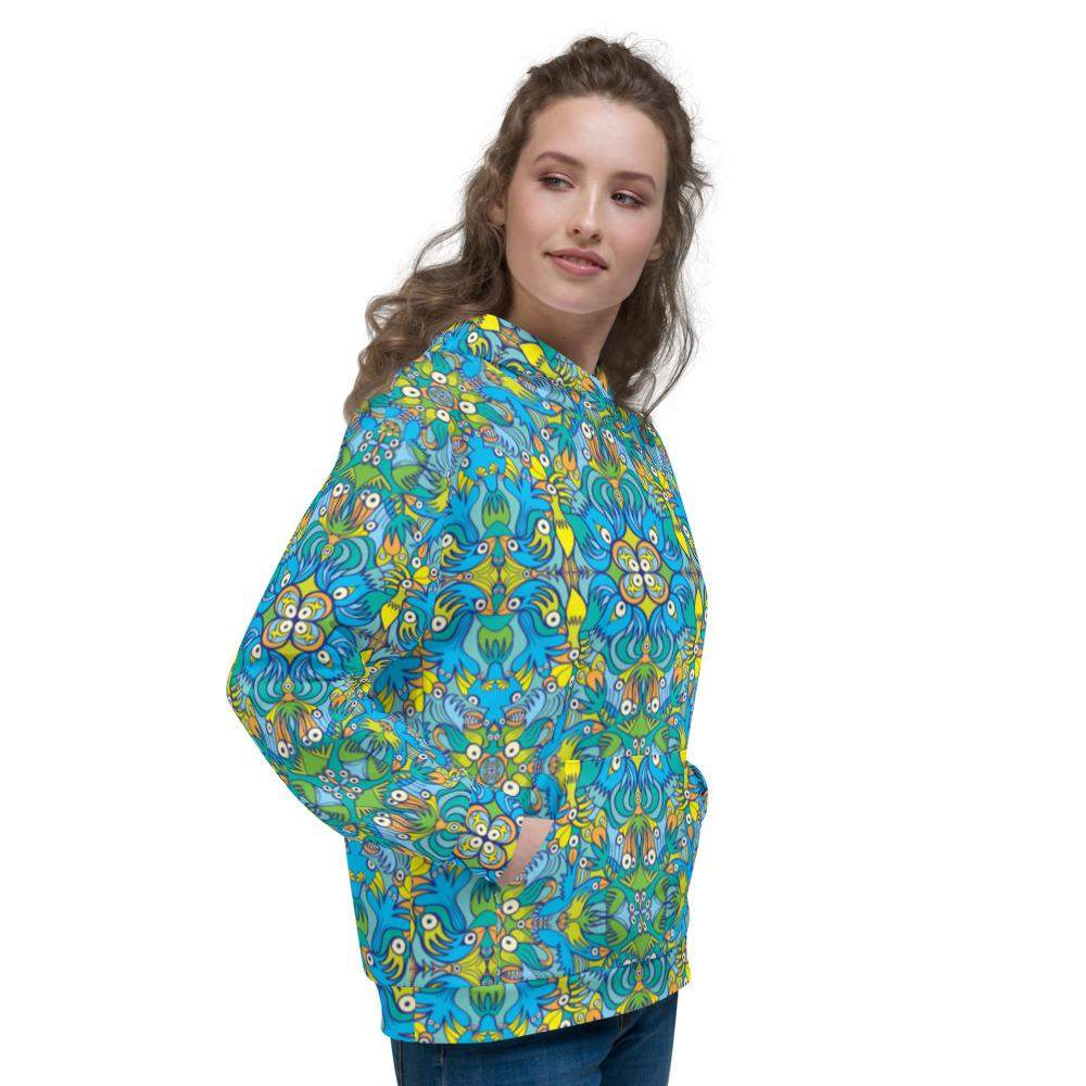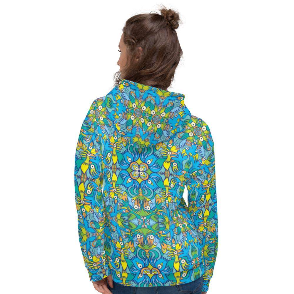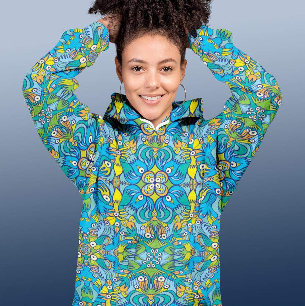 This comfy unisex hoodie has a soft outside with a vibrant print and an even softer brushed fleece inside. The hoodie has a relaxed fit, and it's perfect for wrapping yourself into on a chilly evening.