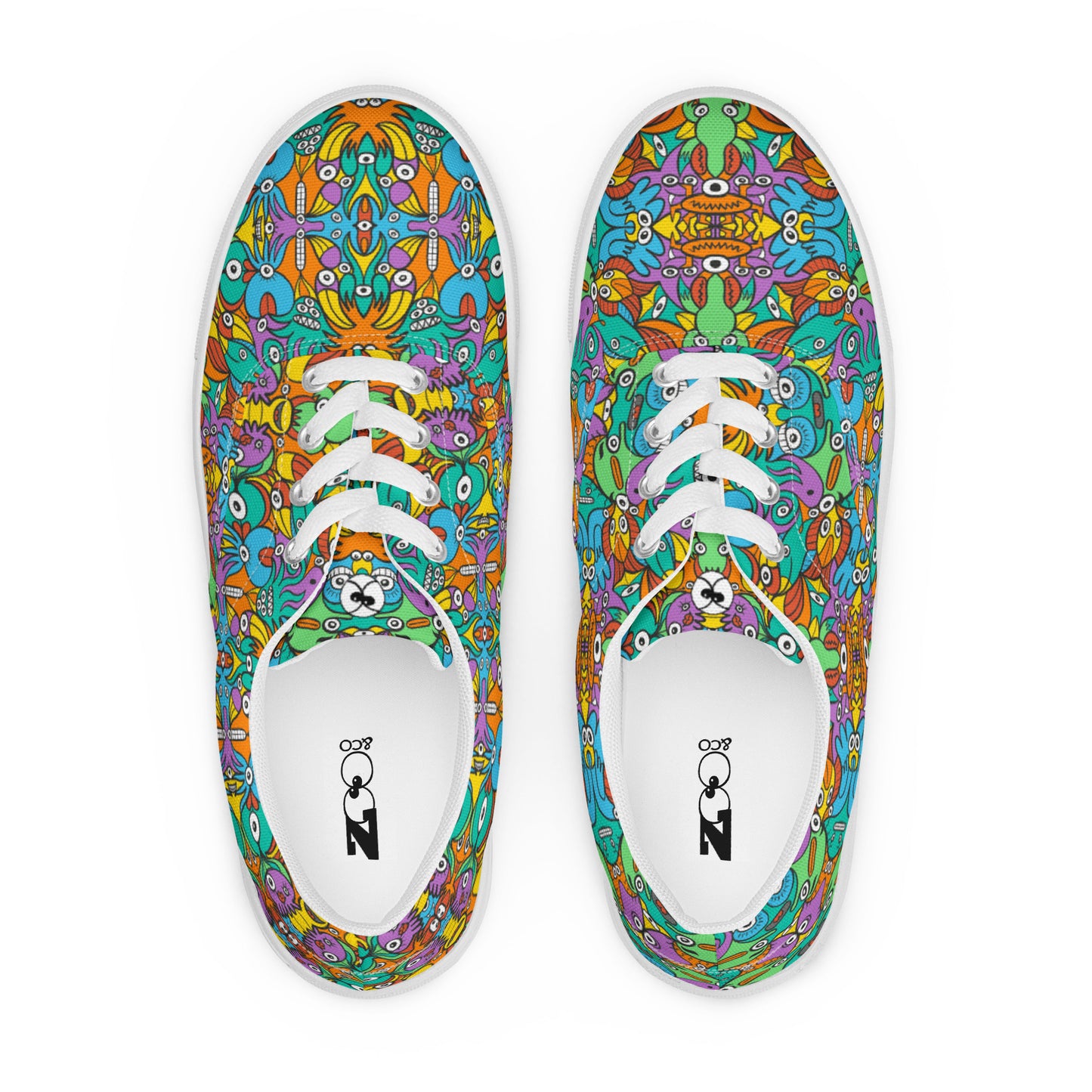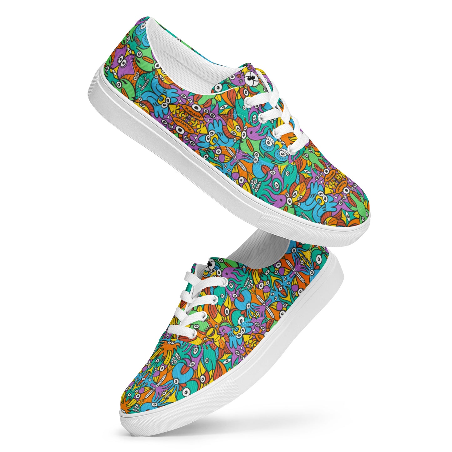 Fantastic doodle world full of weird creatures Women’s lace-up canvas shoes