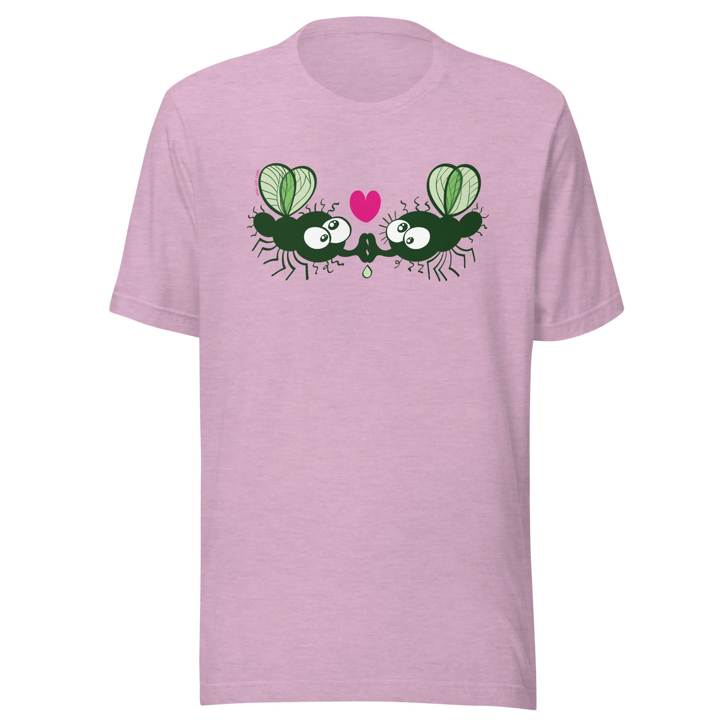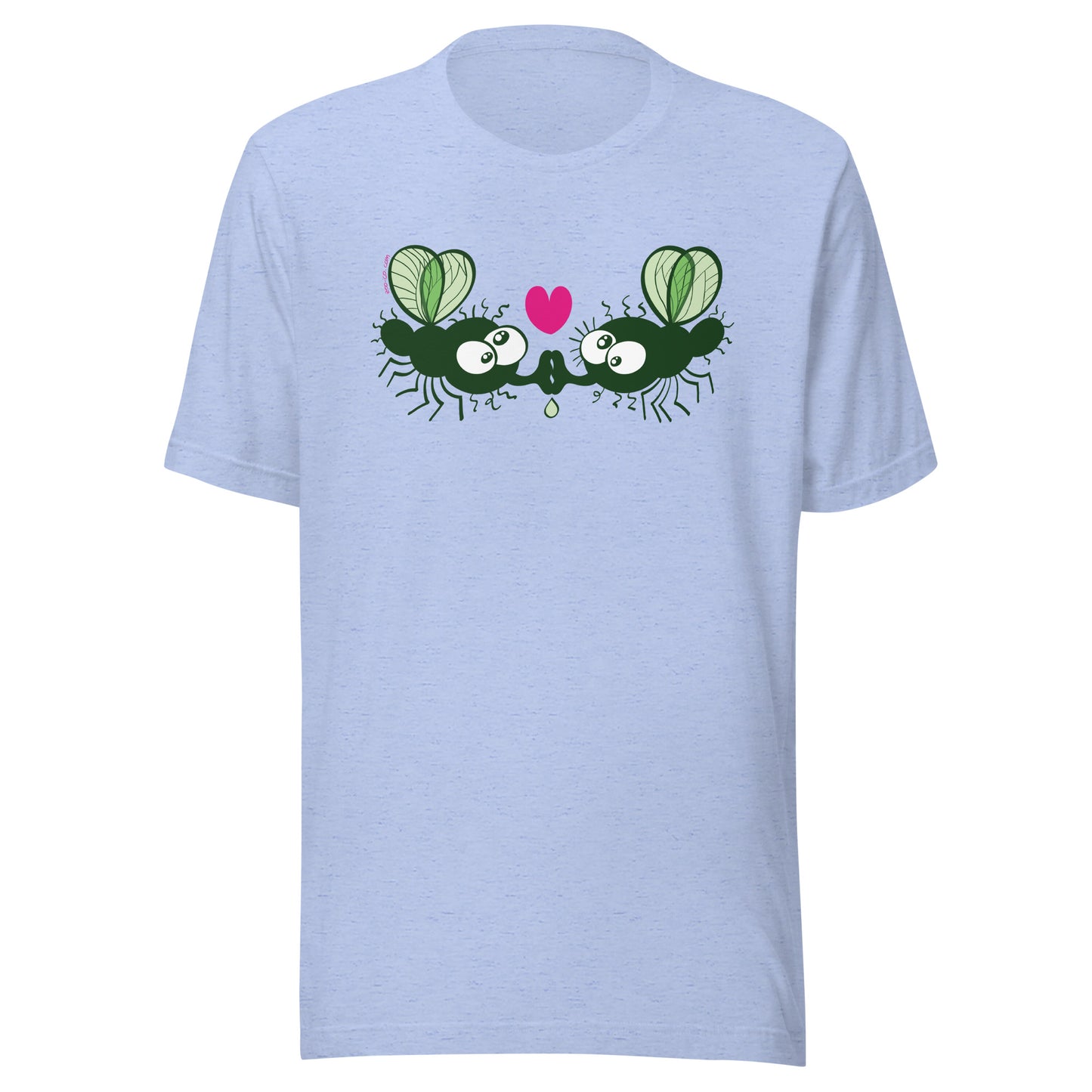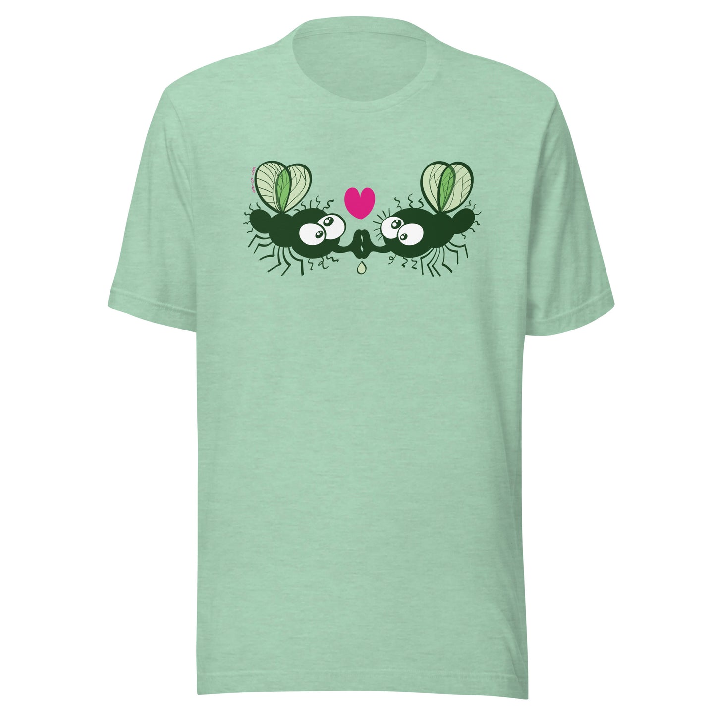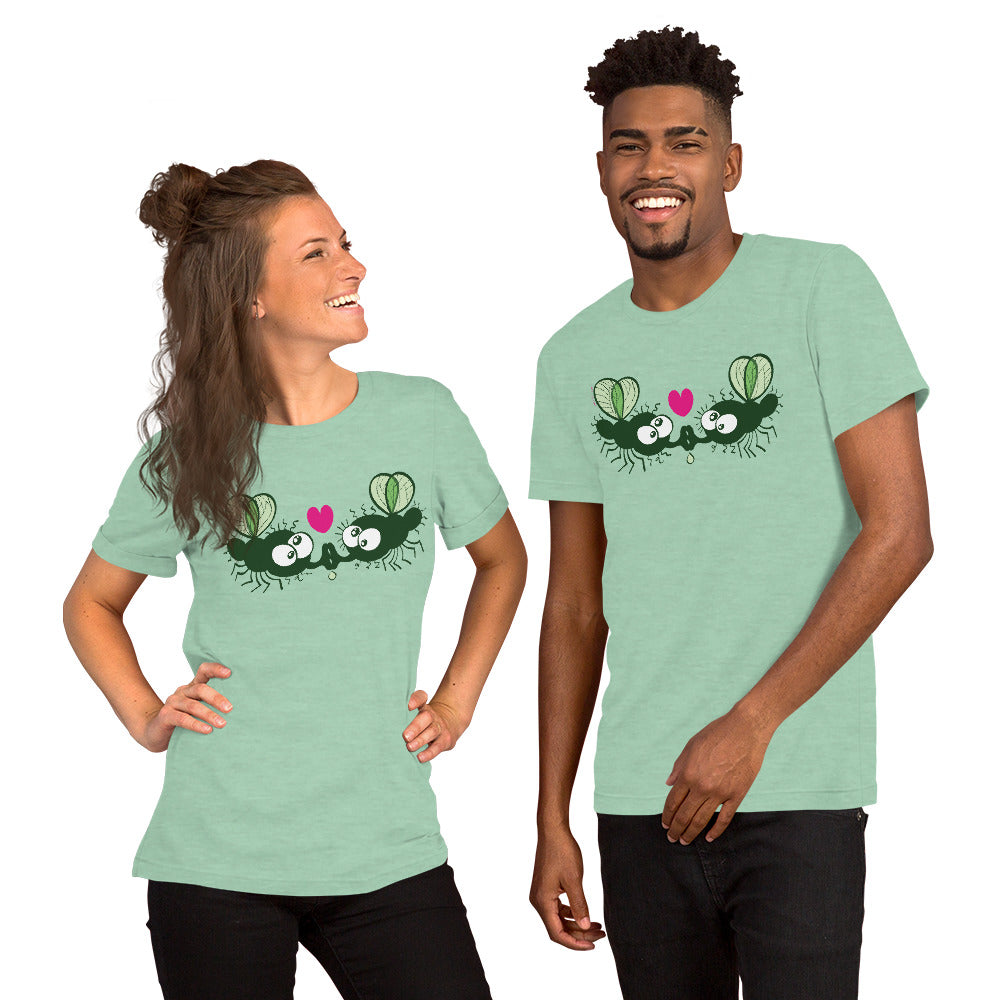 Funny houseflies in love. Love reaches everyone, you can't run away from it! Not even if you're an ugly housefly. Love will make your mate, the housefly, look like the most magnificent creature on Earth. Funny design for Valentine's Day every day!