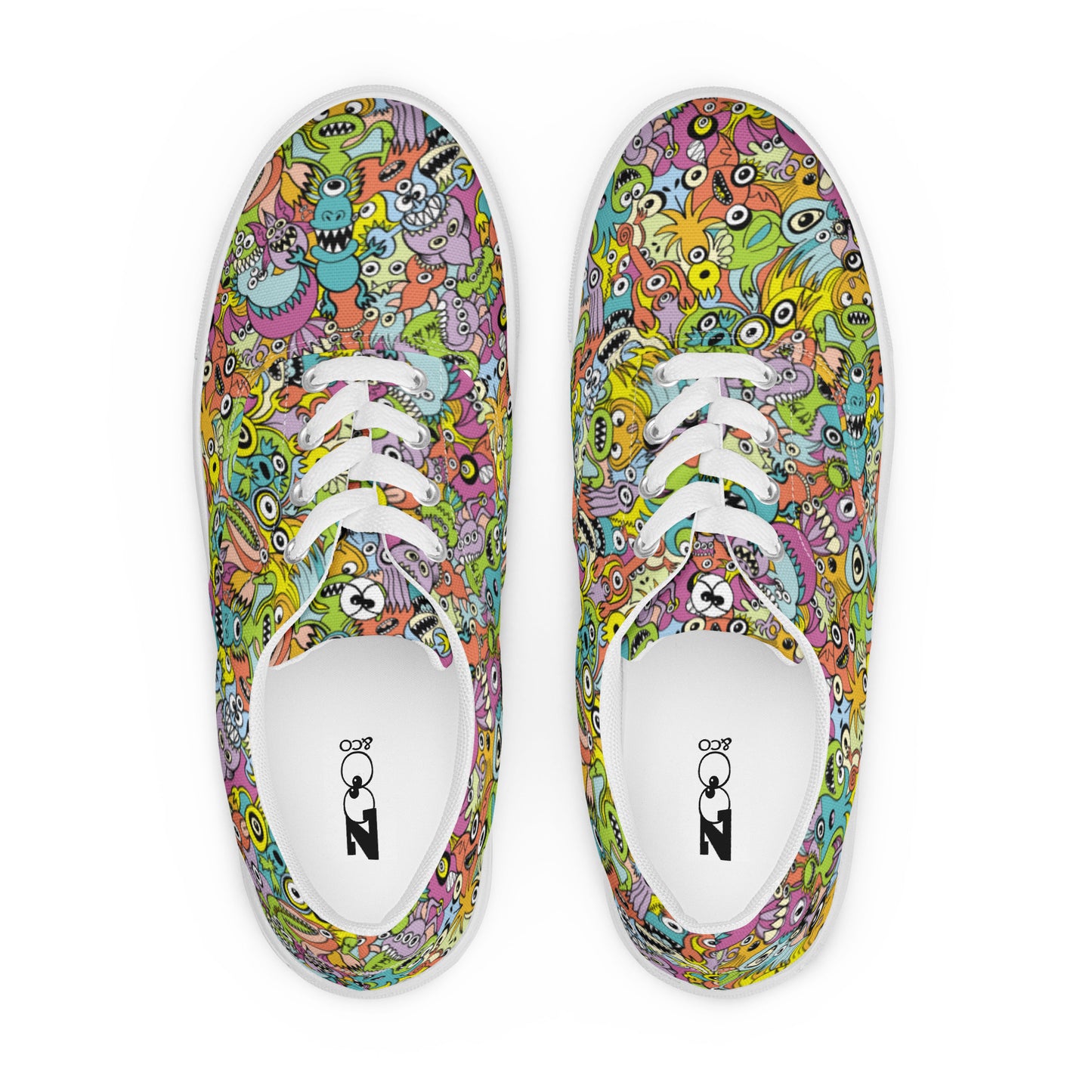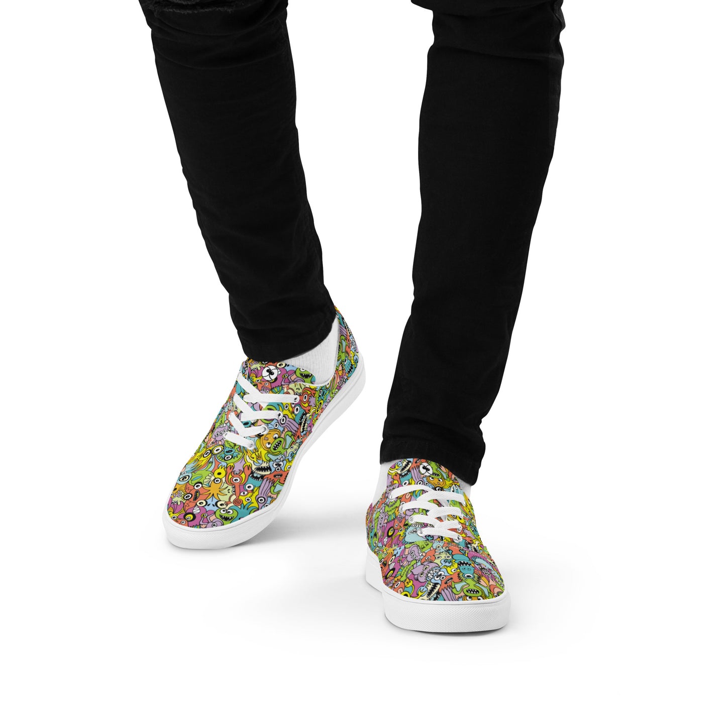 Funny monsters fighting for the best spot for a pattern design Men’s lace-up canvas shoes