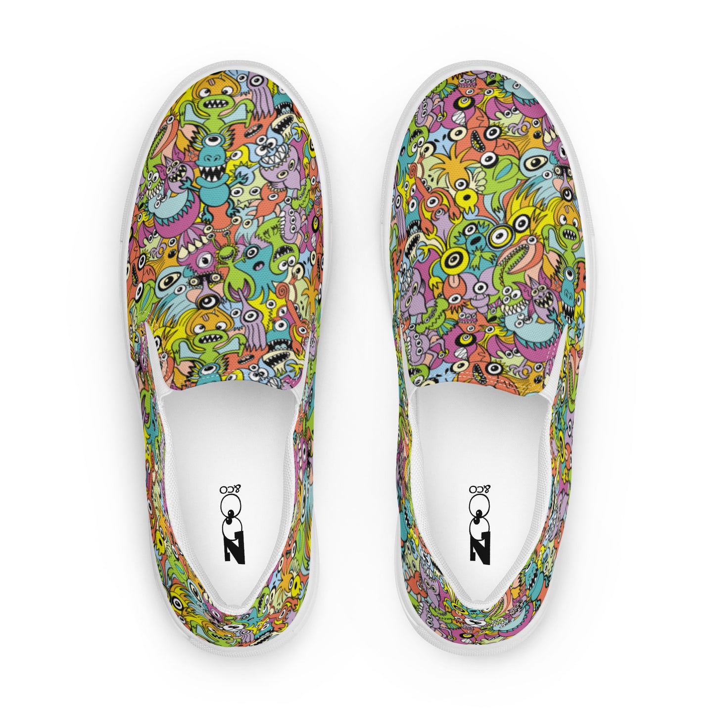 Funny monsters fighting for the best spot for a pattern design Women’s slip-on canvas shoes