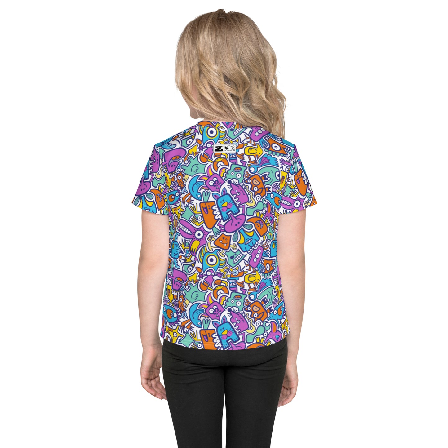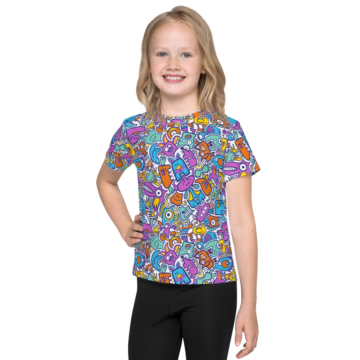 Have lots of fun using this pattern design on your All-over print T-Shirt. Doodle world full of cool characters, half monsters, half animals, created in a very simple and nice style.