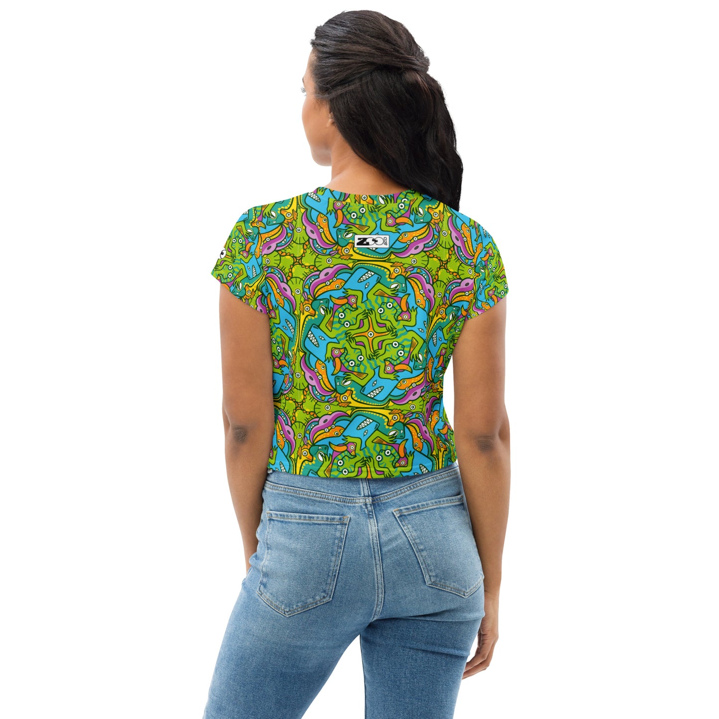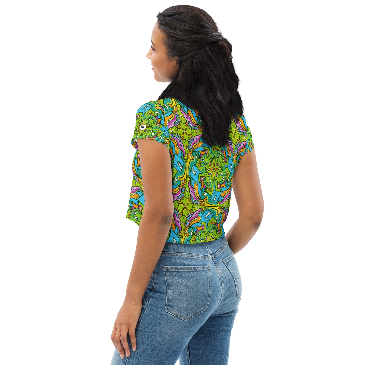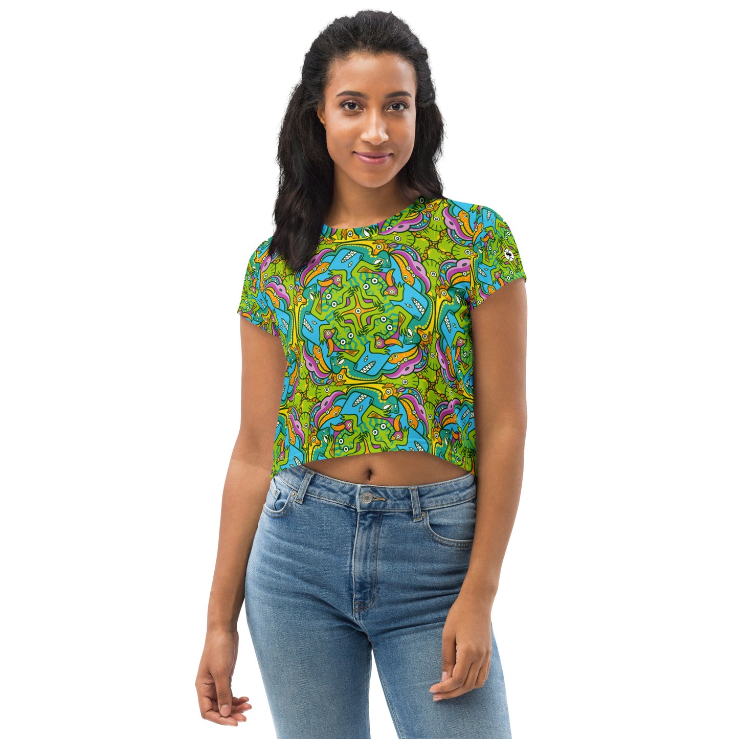 Looking for you next wardrobe favorite? Well, look no further because this crop tee is printed and sewn to fit you just right. To top that off, the original all-over design is definitely worth showing off, so don't hesitate to own one of these tees - they're meant to be adored.
