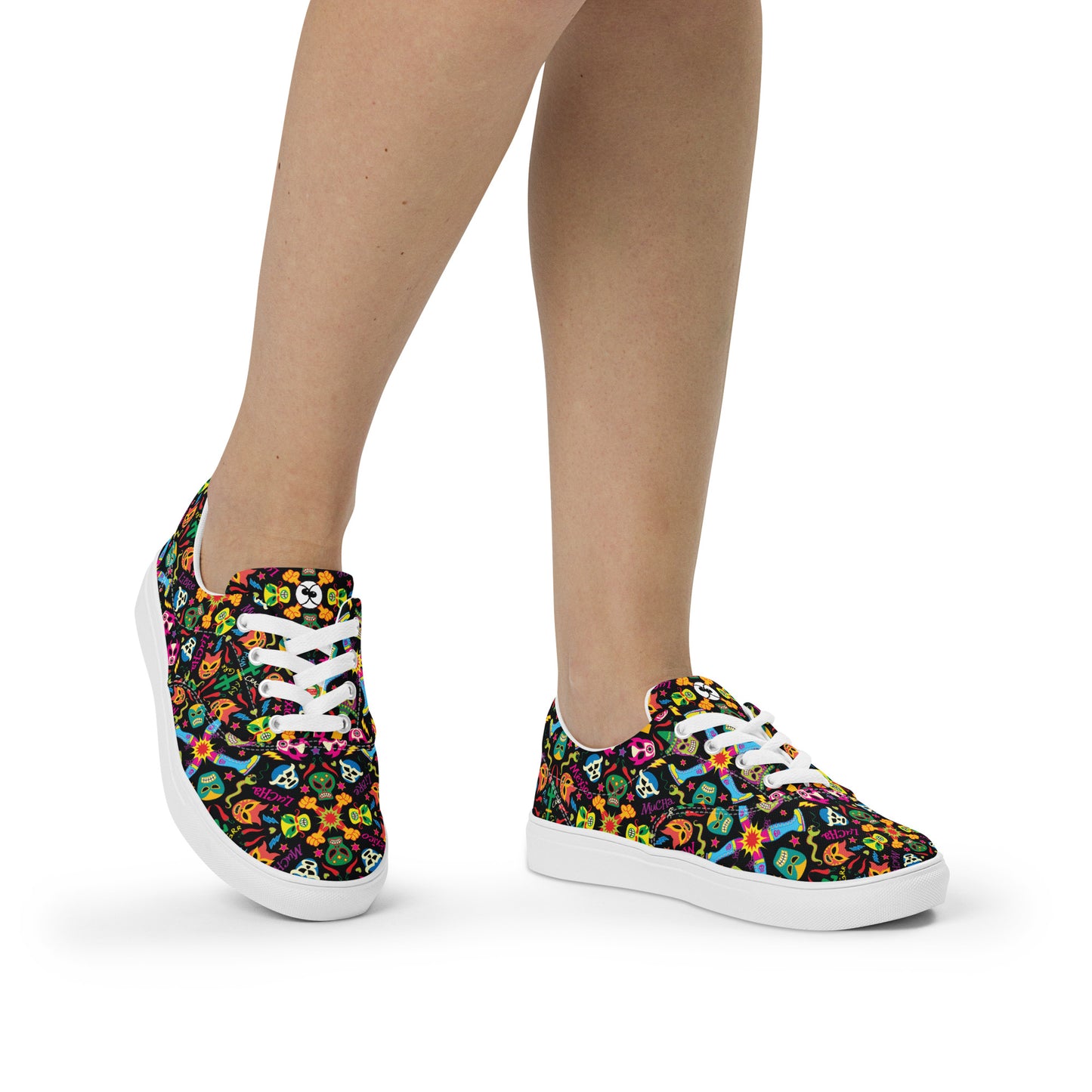 Mexican wrestling colorful party Women’s lace-up canvas shoes