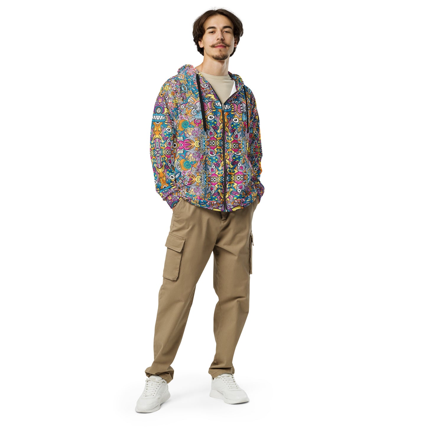 Step into the mesmerizing world of Cosmic Fusion Where Monsters and Robots Collide, a pattern design that transforms a Unisex zip hoodie into a portal to a distant planet filled with mystery and wonder. The vibrant patterns invite you to explore a realm where peculiar beings blur the lines between machine and alien essence, creating an enchanting tableau of lifeforms that defy comprehension.