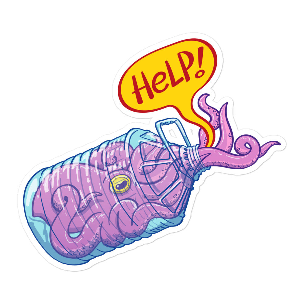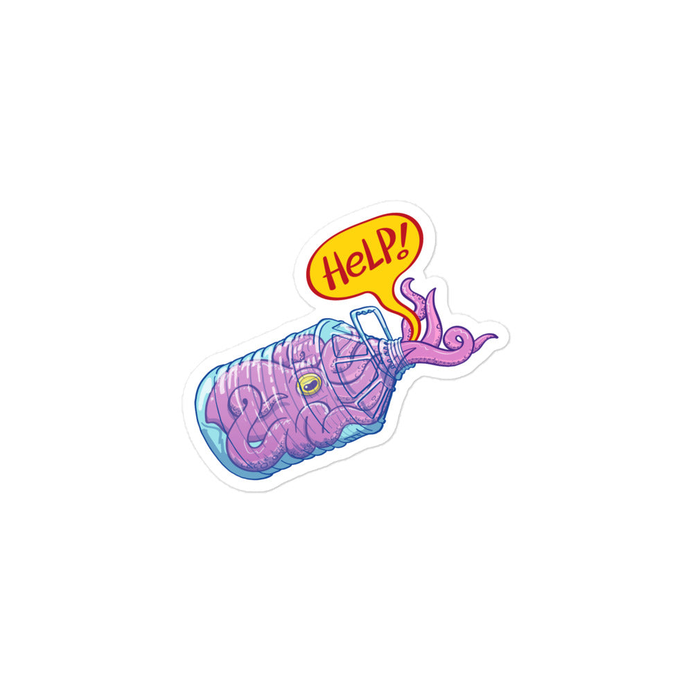 Octopus in trouble asking for help while trapped in a plastic bottle Bubble-free stickers