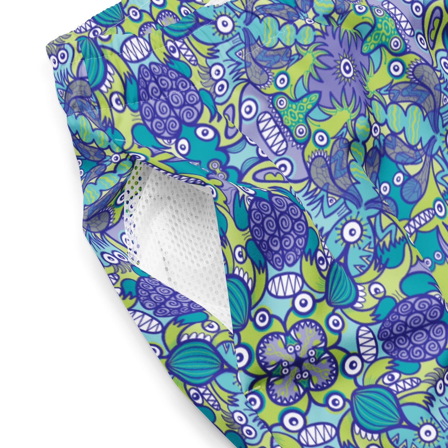 These swim trunks feature a captivating design that draws inspiration from the enchanting world of underwater creatures. The lively pattern captures the essence of ocean life with its playful depiction, utilizing a vibrant color palette ranging from turquoise to green and blue. This carefully chosen combination evokes feelings of tranquility, serenity, and delightful surprise.