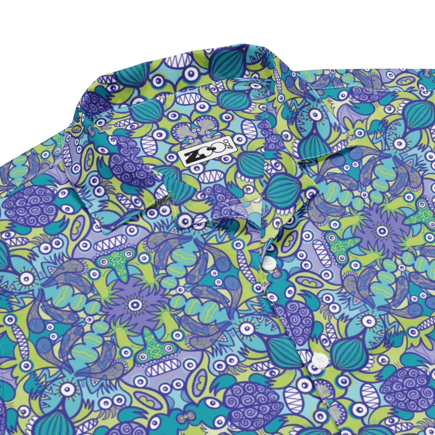 Indulge in the allure of our captivating button shirt, featuring the enchanting "Once upon a time in an ocean full of life" pattern. This mesmerizing design transcends seasons, taking you on an immersive journey into the depths of an underwater wonderland. A vivid color palette of turquoise, green, and blue whispers tranquility while sparking wonder in every glance.