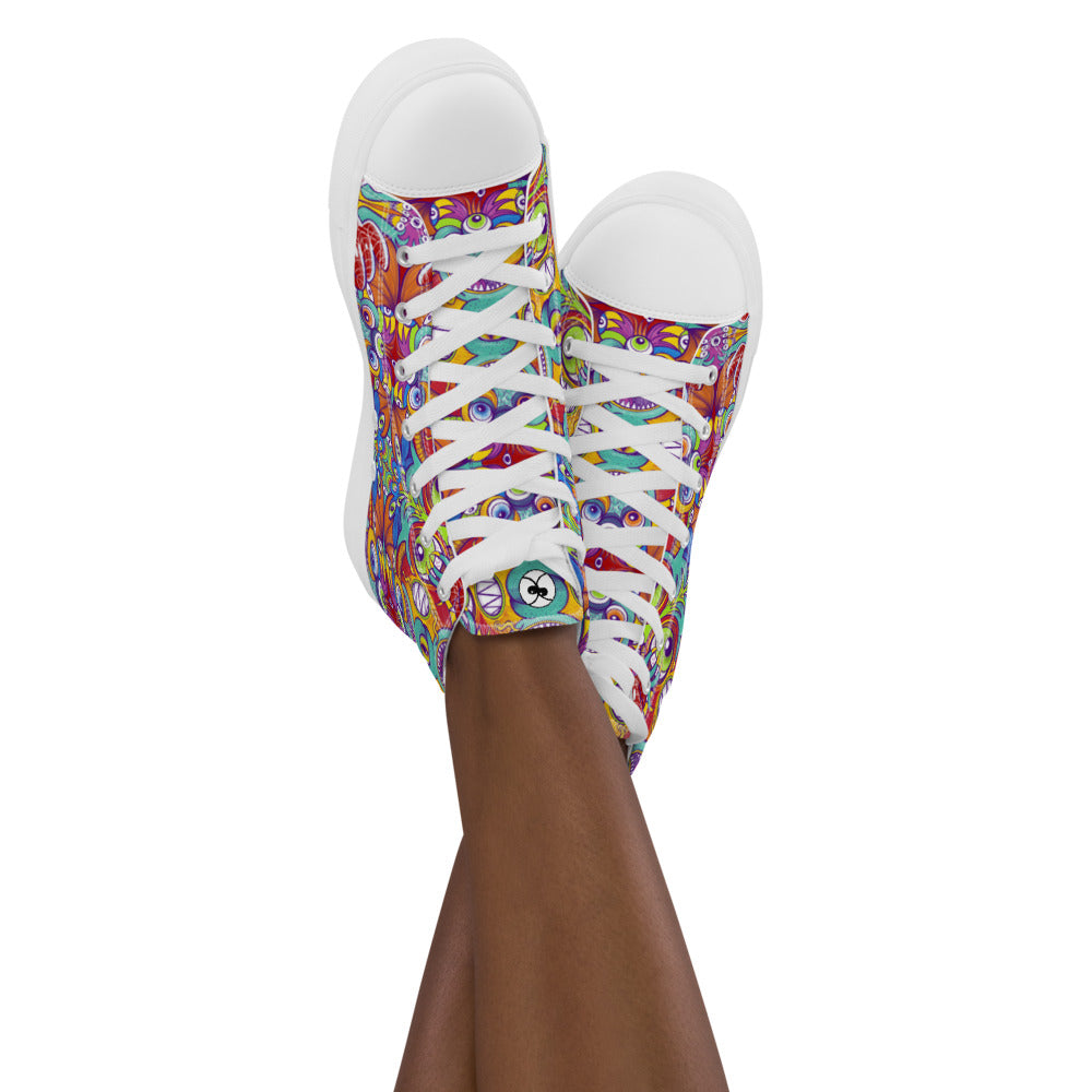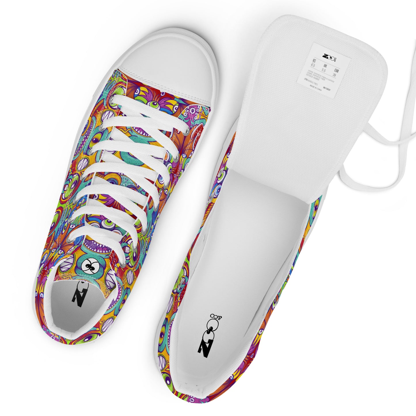 Psychedelic monsters having fun pattern design Women’s high top canvas shoes
