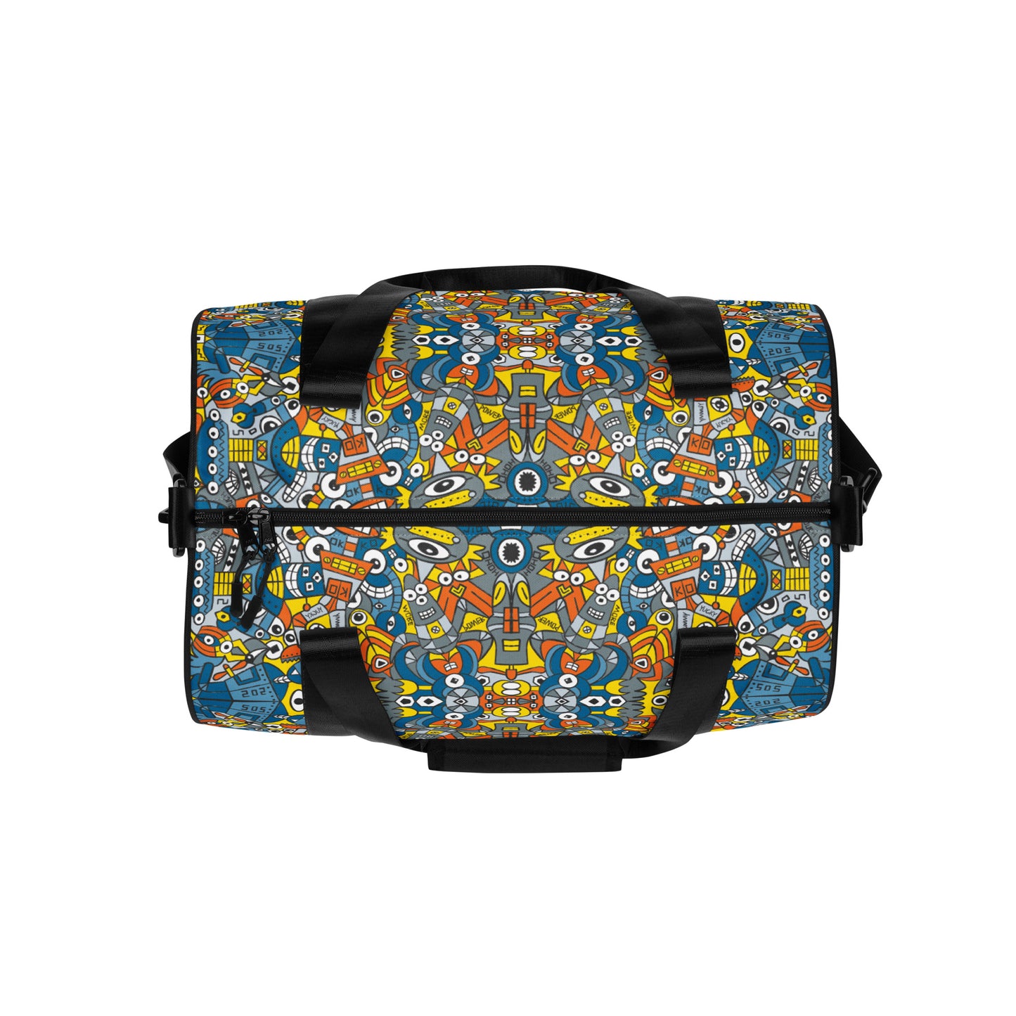 Ready to get your fitness on? Add some punch to pumping iron with this all-over print gym bag. Made from 100% polyester and sturdy, water-resistant fabric, this bag is fun meets function. And it’s got pockets!