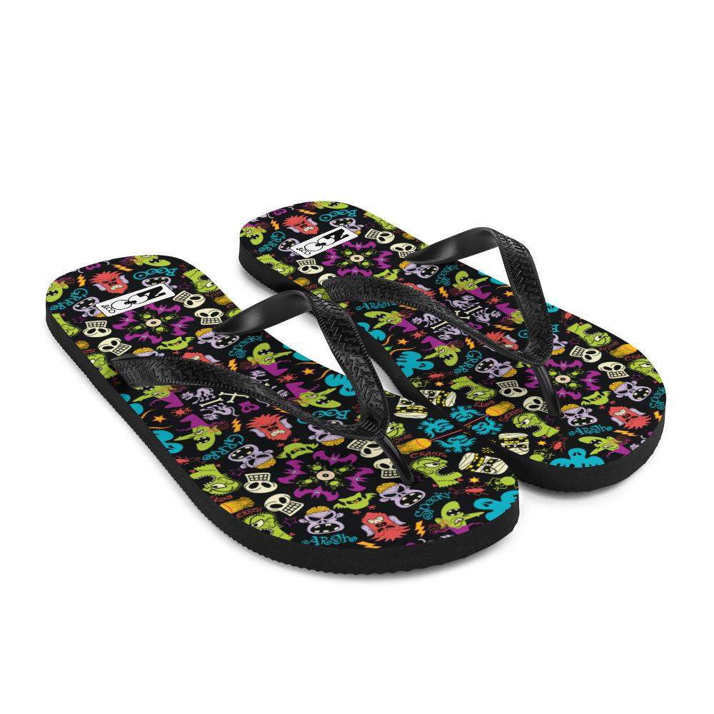 Spooky Halloween characters in a pattern design Flip-Flops