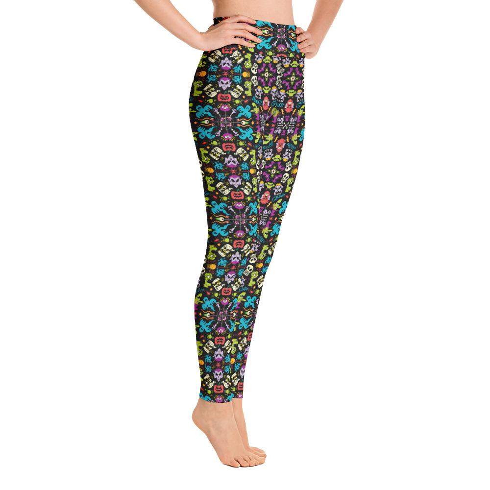Spooky Halloween characters in a pattern design Yoga Leggings