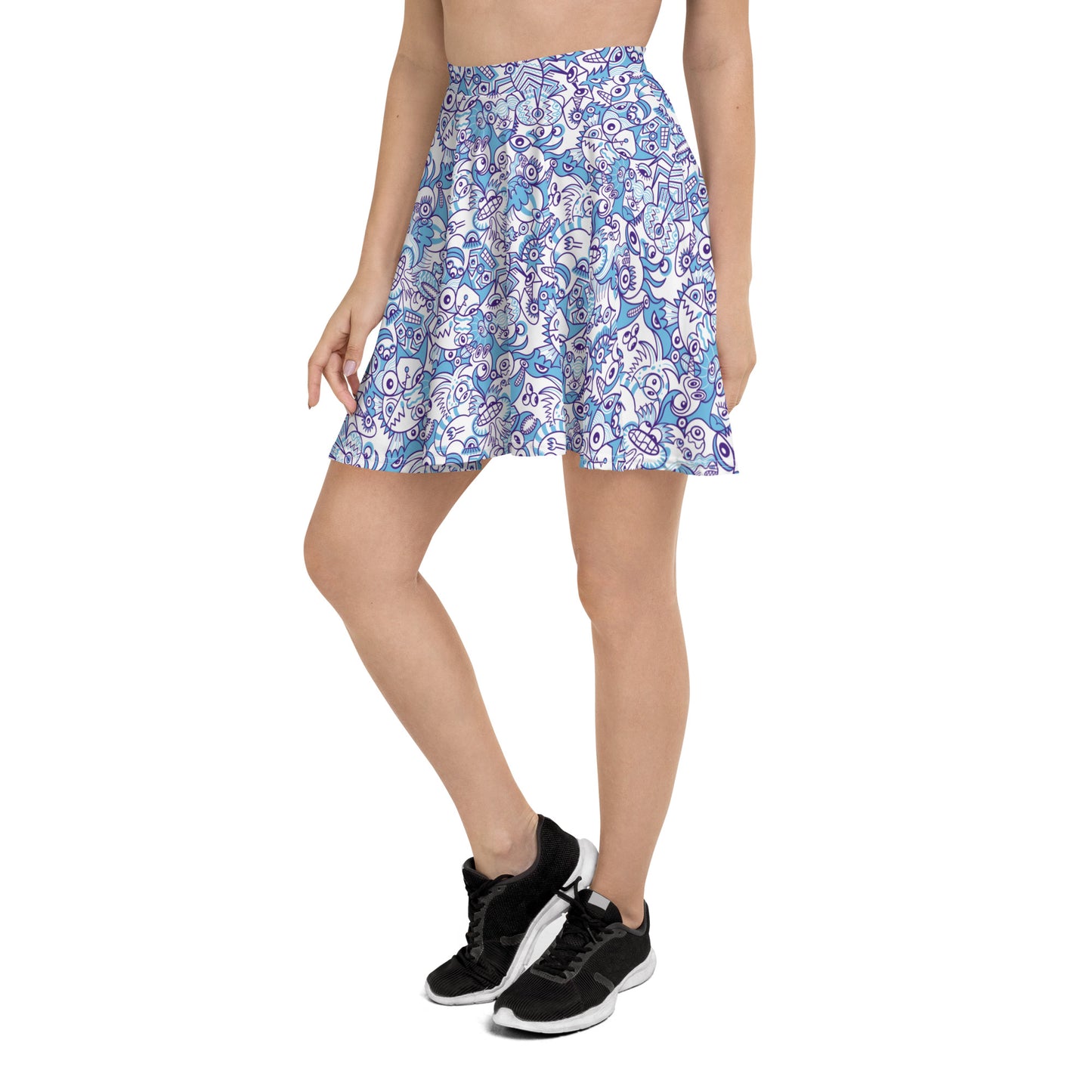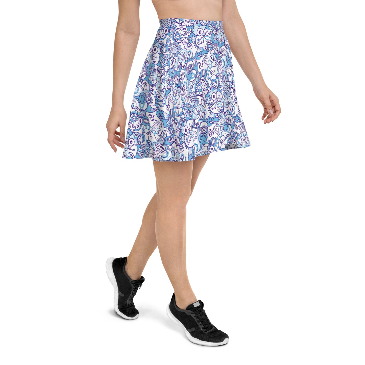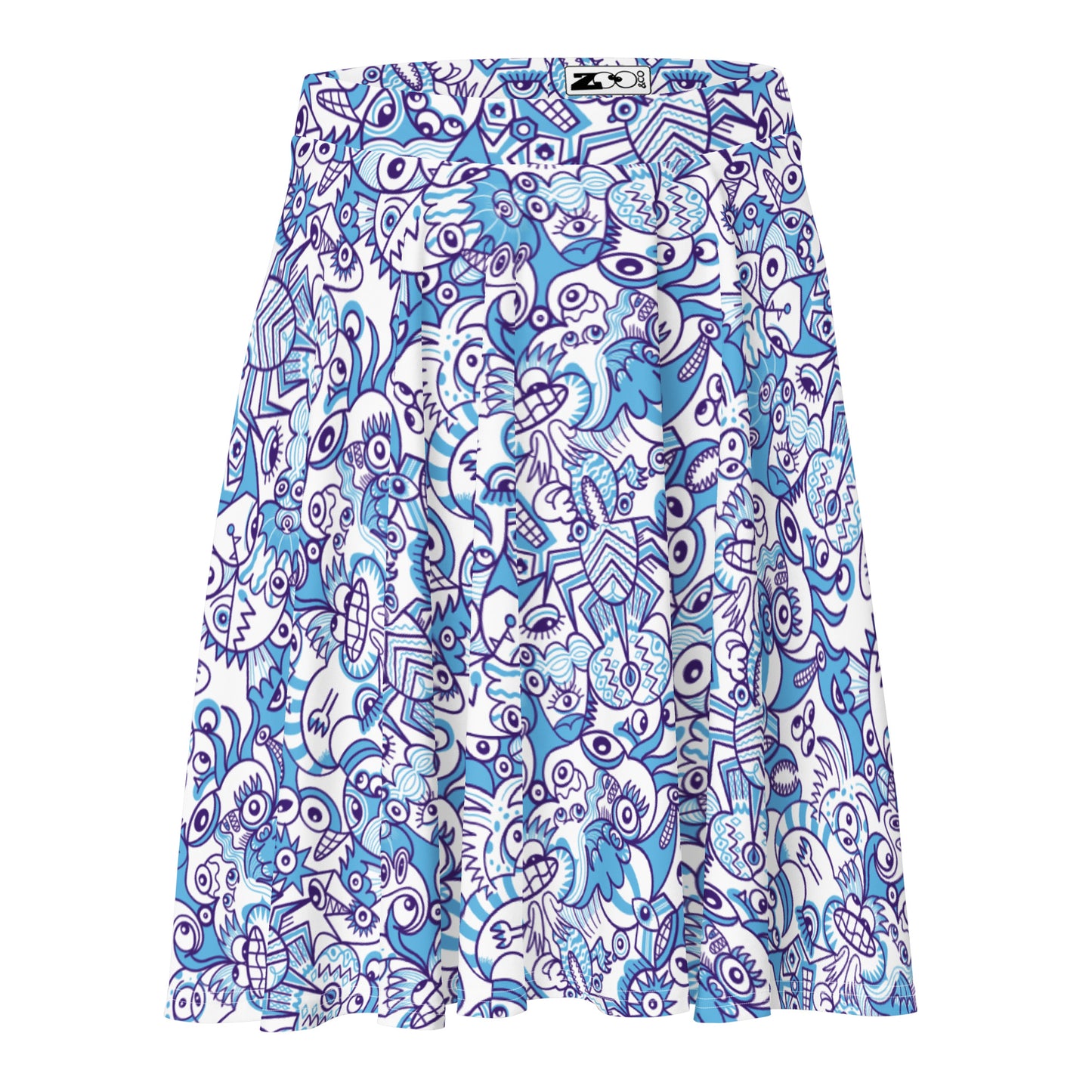 Ladies, get ready to step into a whimsical wonderland with our Skater Skirt featuring the captivating Whimsical Blue Doodle Critterscape pattern! This design is like a burst of joy, blending creatures, monsters, and machines into a delightful and imaginative fusion. The playful flat colors and whimsical outlines will instantly add a touch of fun and charm to your wardrobe.
