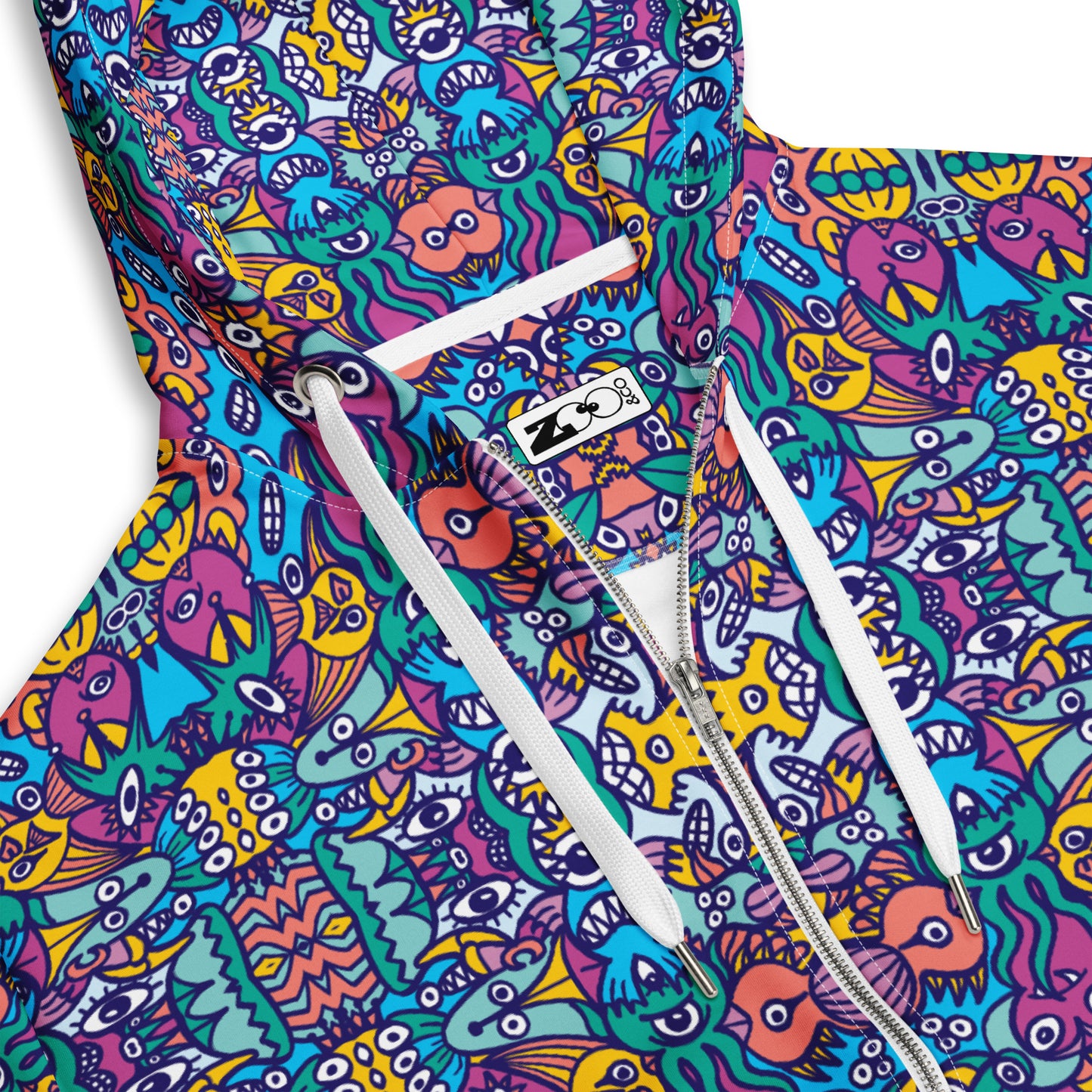 Whimsical pattern full of multicolor alien critters - Unisex zip hoodie