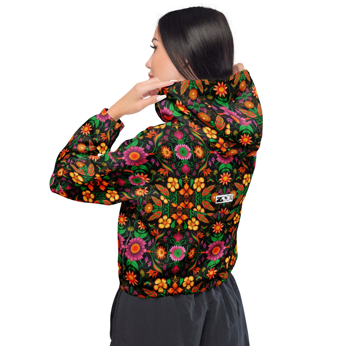 Wild flowers in a luxuriant jungle Women’s cropped windbreaker
